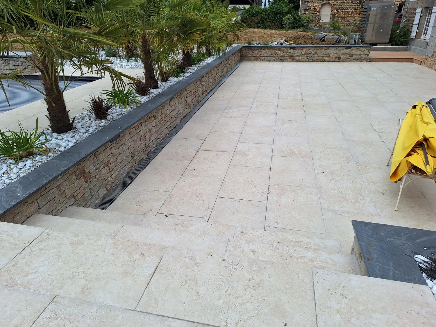 Ce que vous aimez comme type de dallage, en pierre naturelle, en grès Céram, avec des effets moderne claire ou foncée, en reconstitué, lisse ou avec des aspérités, petit format, ou grandes dalles, avec une pose en ligne, ou avec un calepinage spécial, qui fera plus rustique ou plus cossus. Dans le choix d’un même matériau, nous pouvons avoir différentes ambiances suivant le format, la couleur ou la pose. La palette des possibilités ou questions est très grande, et après réflexion faite, nous faisons un plan de conception à l’échelle pour bien visualiser les subtilités et détailles de la réalisation.